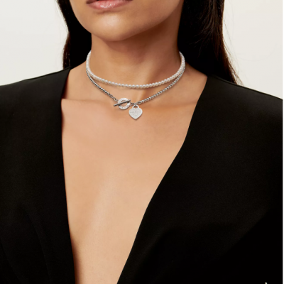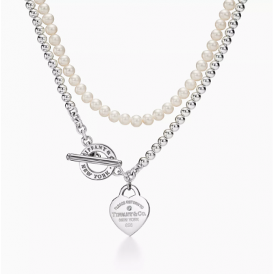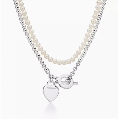 Return to Tiffany® Wrap Necklace in Silver with Pearls and a Diamond, Small