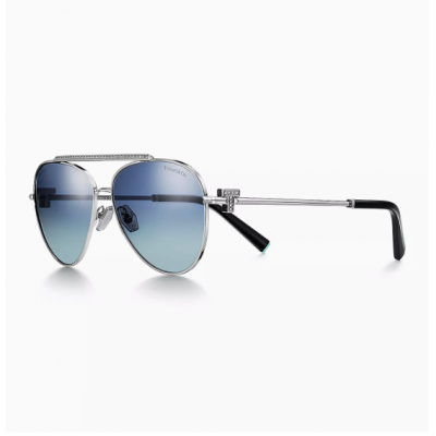 Sunglasses in Silver-colored Metal with Tiffany Blue® Gradient Lenses