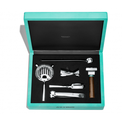 Bar Tool Boxed Set in Wood and Brass with Silver Plate