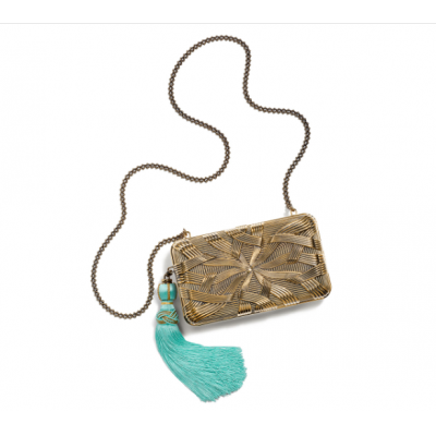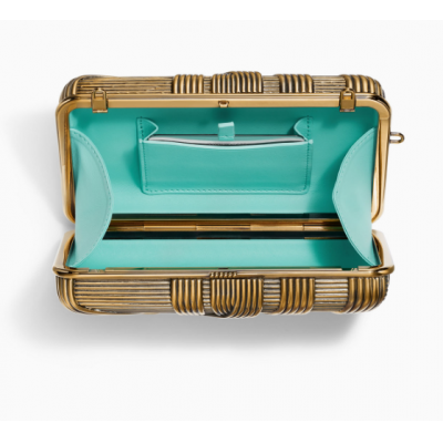 Ribbons Rectangular Minaudiére in Gold-plated Brass