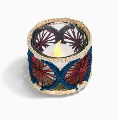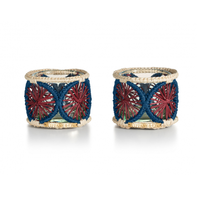 trang đầu > Đồ sinh hoạt > Candleholder Set of Two, in Crystal Glass and Multicolored Raffia