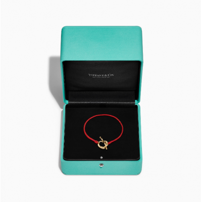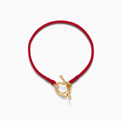 Open Heart Bracelet in Yellow Gold on a Red Silk Cord